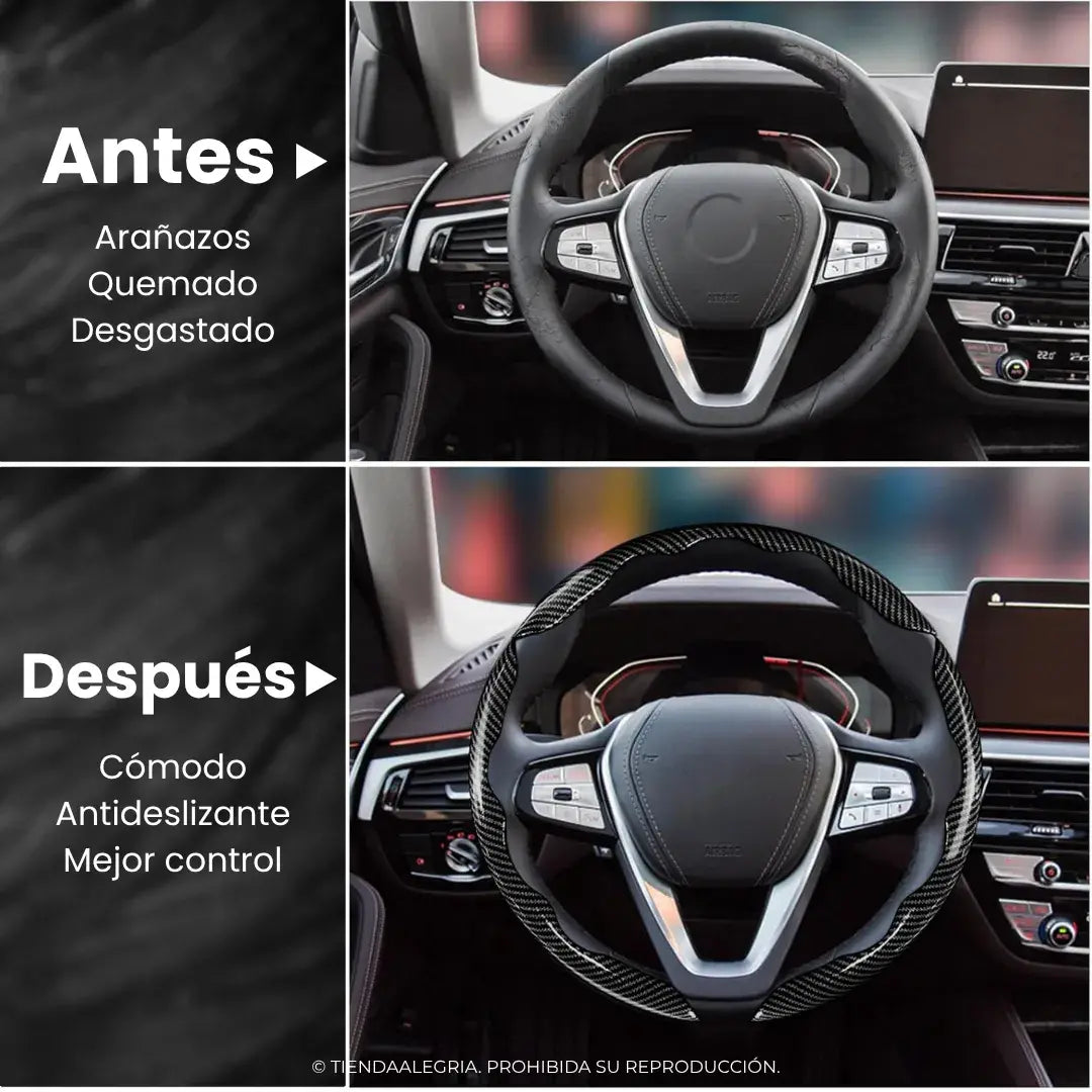 Este cobertor está pensado para la zona del aro del volante. No cubras ni modifiques el centro del volante donde está el airbag o controles electrónicos.