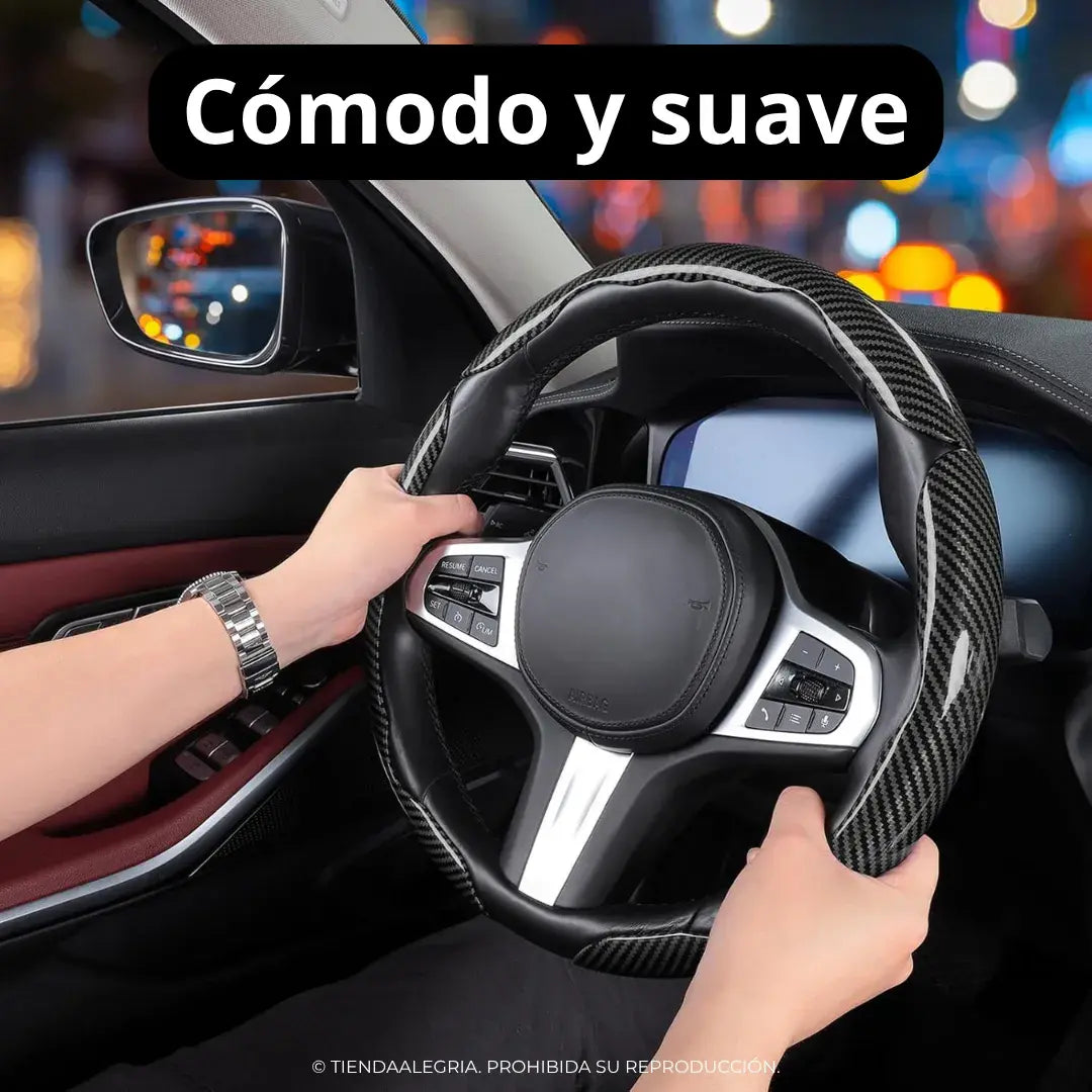 Su diseño deportivo con textura de fibra de carbono convierte cualquier volante en un detalle de lujo. Más estilo, más actitud.